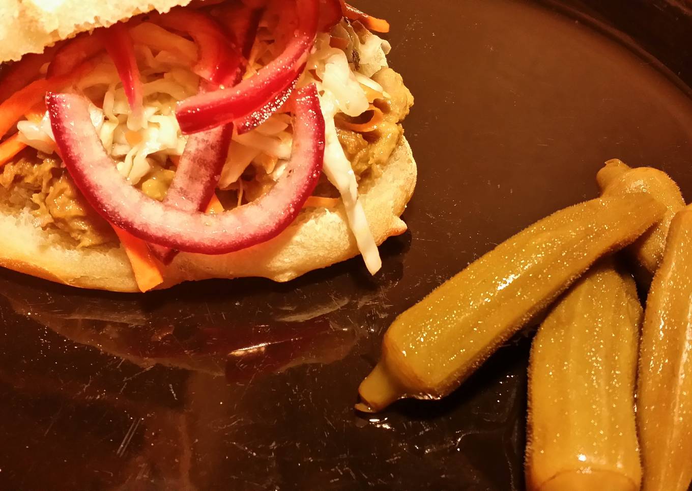 https://cookpad.com/us/recipes/366743-izs-vegan-mustard-bbq-sauce - Hinge ciabatta roll and top with BBQ pork